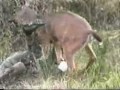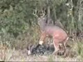 Description: A huge whitetail deer attacks a hunter. vicious |