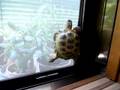 Description: My pet russian tortoise trying to climb a window screen. He is getting better at it every day. One day he might be a.....? But probably we should do something before he pokes a hole in the screen. うちのロシアリクガメが網戸を登ろうとしています。 |