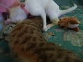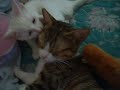 Description: kitty mujer despierta a Mr. kitty y Mr. kitty se enoja. |